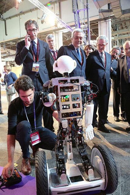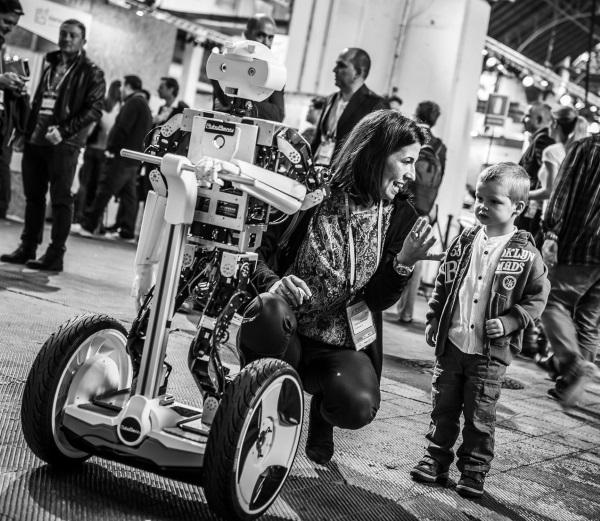 Robosavvy團隊表示他們此前一直在為一個大學項目完成人機交互的部分,其成果即是新開發的這款機器人?!拔覀儽谎垍⒓?YFN活動,并展示我們的定制機器人技術開發能力。這個機器人擁有經過改進的類似賽格威的平臺,它的頭可以通過Oculus Rift遠程控制,這個人形機器人可以通過運動自己的身體來控制控制賽格威或者也可以通過遠程直接控制電子平衡車?!毖芯咳藛T解釋說。