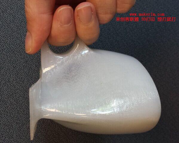 這款杯子使用透明塑料打印。形狀簡(jiǎn)單,甚至可以說有些怪異,有如嬰兒的鞋子,其造價(jià)卻達(dá)到了昂貴的500美元。研究過程中,Mark Weislogel和他的團(tuán)隊(duì)經(jīng)歷了無數(shù)次的實(shí)驗(yàn),最終使用3D打印出了6只成品。